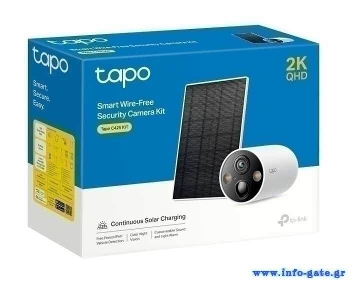 TP-LINK smart ηλιακή κάμερα Tapo C425 KIT, 2K, Wi-Fi, IP66, V.1.20