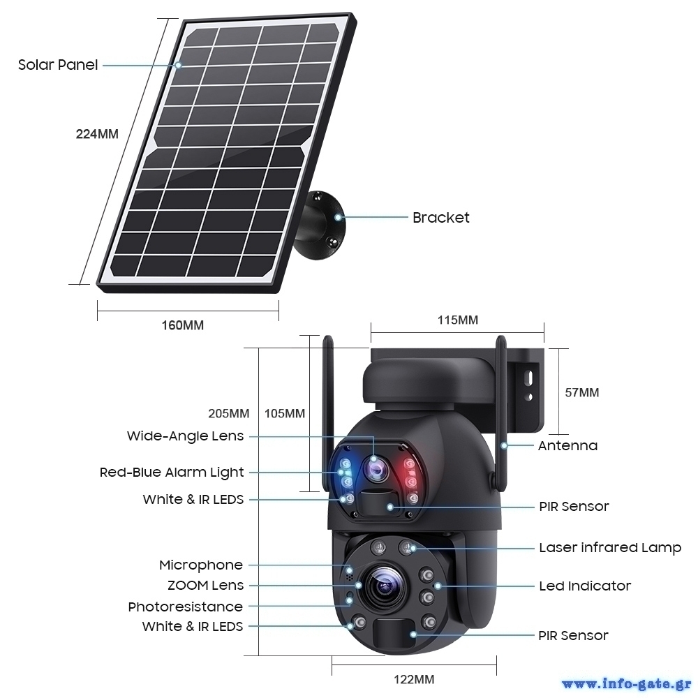 SECTEC smart ηλιακή κάμερα ST-5986M, 3MP dual lens, 20x zoom, 4G, SD, PTZ