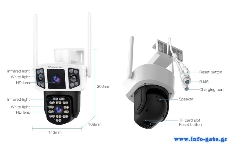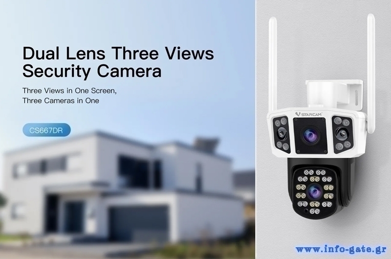 VSTARCAM smart κάμερα CS667DR, dual lens, 3MP, WiFi, SD, PTZ, IP66