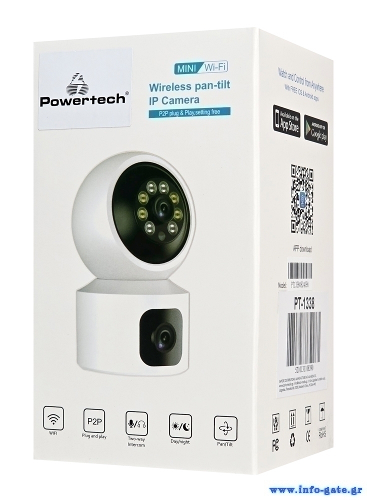 POWERTECH smart κάμερα PT-1338, 2MP, dual lens, WiFi, PTZ, SD