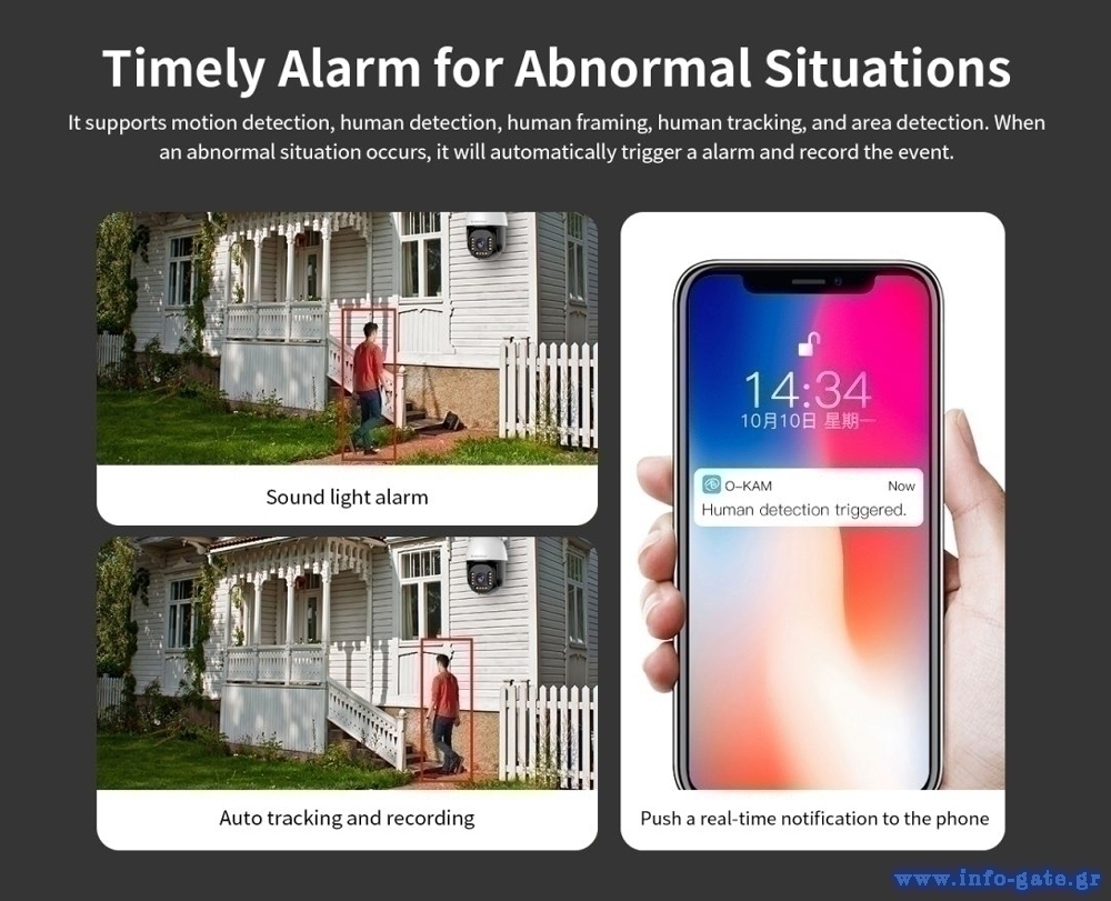 Μπορεί να ανιχνεύσει κινήσεις, στέλνοντας ειδοποιήσεις στο smartphone σας κάθε φορά που ανιχνεύεται κίνηση και εξοπλίζεται με υψηλής ποιότητας μικρόφωνο που επιτρέπει την αμφίδρομη μεταφορά φωνής και ήχου.