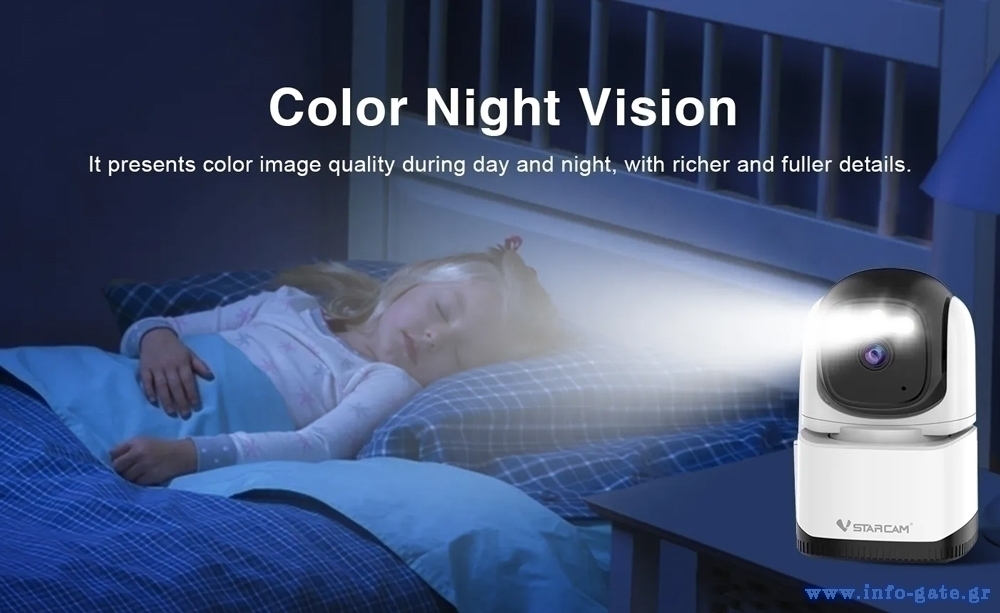 Μπορεί να ανιχνεύσει κινήσεις, στέλνοντας ειδοποιήσεις στο smartphone σας κάθε φορά που ανιχνεύεται κίνηση και εξοπλίζεται με υψηλής ποιότητας μικρόφωνο που επιτρέπει την αμφίδρομη μεταφορά φωνής και ήχου.