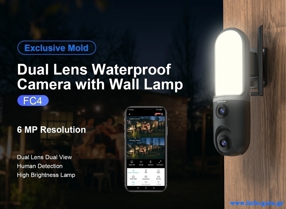 VSTARCAM smart κάμερα FC4 με φωτισμό, dual lens, 3MP, WiFi, SD, PTZ, IP66
