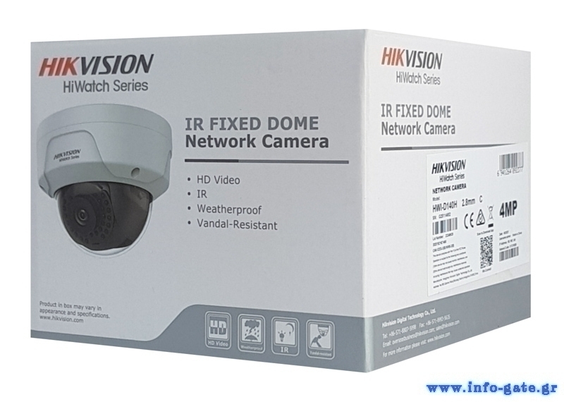 Δικτυακή κάμερα POE IP της σειράς HiWatch από την HIKVISION, με φακό 2.8mm και ανάλυση 2K με αισθητήρα 4MP. Τα βίντεο που καταγράφονται αποθηκεύονται με κωδικοποίηση Η.265+ ενώ το εύρος υπερύθρων IR της κάμερας φτάνει έως 30m. Το σώμα της κάμερας είναι κατασκευασμένο από ανθεκτικό μεταλλικό υλικό με αδιάβροχη προστασία IP67 και αντοχή στα χτυπήματα IK10.