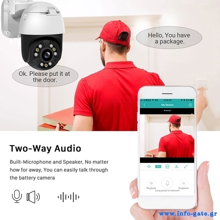Ρυθμίζεται εύκολα και ελέγχεται από smartphone μέσω της δωρεάν εφαρμογής iCSee. Μπορεί να ανιχνεύσει κινήσεις, στέλνοντας ειδοποιήσεις στο smartphone σας κάθε φορά που ανιχνεύεται κίνηση και εξοπλίζεται με υψηλής ποιότητας μικρόφωνο που επιτρέπει την αμφίδρομη μεταφορά φωνής και ήχου.