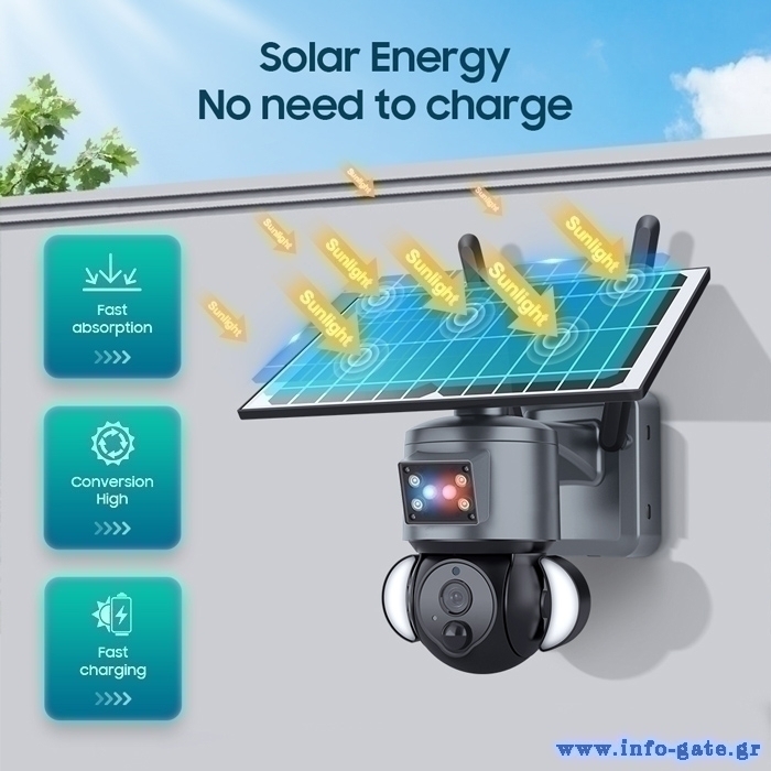 SECTEC smart ηλιακή κάμερα ST-S528M-4G-3MASR με προβολείς, 3MP, 4G, PTZ