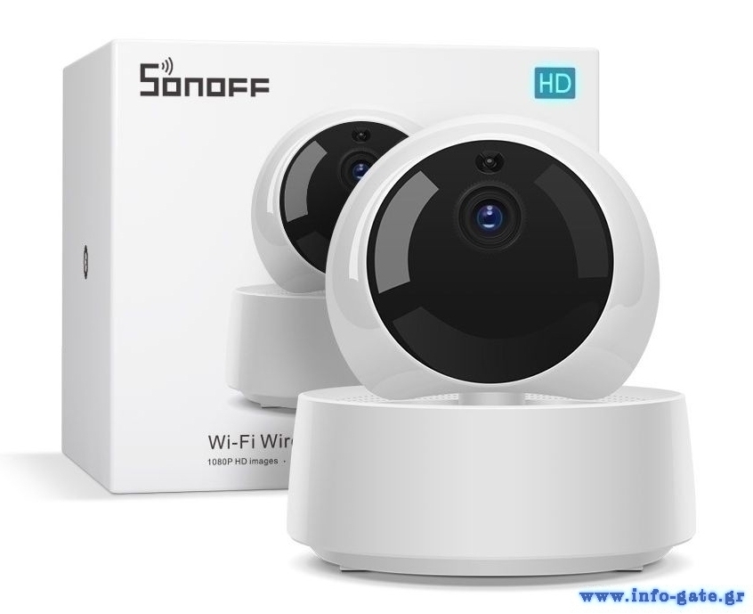 Wi-Fi κάμερα ασφαλείας της Sonoff, η οποία ελέγχεται μέσω app στο smartphone, ενώ είναι συμβατή και με NVR καταγραφικά συστήματα.