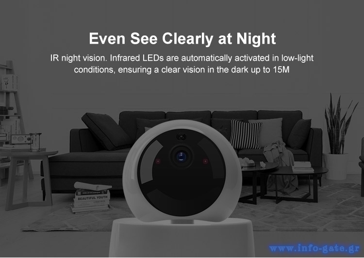 Λειτουργίες: remote control, two-way audio, motion detection, share control, activity alert, push notification, RTSP protocol, TF card storage