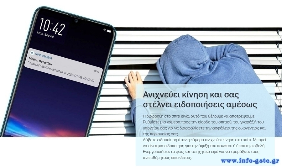 -Ανίχνευση κίνησης και ειδοποιήσεις: Σας ειδοποιεί όταν η κάμερα ανιχνεύει κίνηση