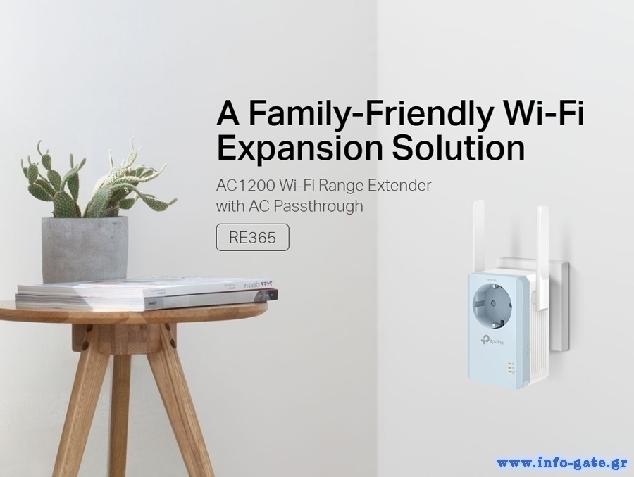 TP-LINK WiFi range extender RE365 με Passthrough, AC1200 1200Mbps, Ver. 3.0
