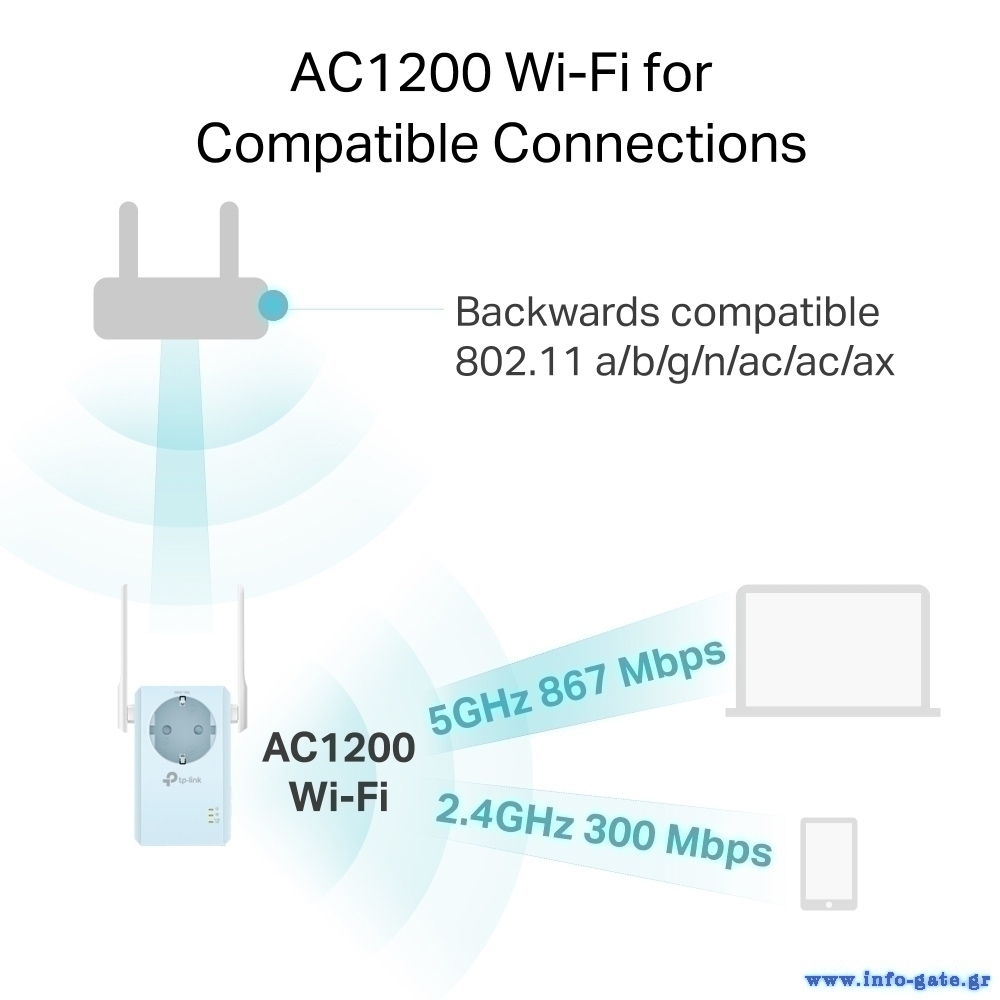 -διατηρήστε ολόκληρο το σπίτι σας συνδεδεμένο με ισχυρή επέκταση WiFi σε ταχύτητες έως 1.2Gbps