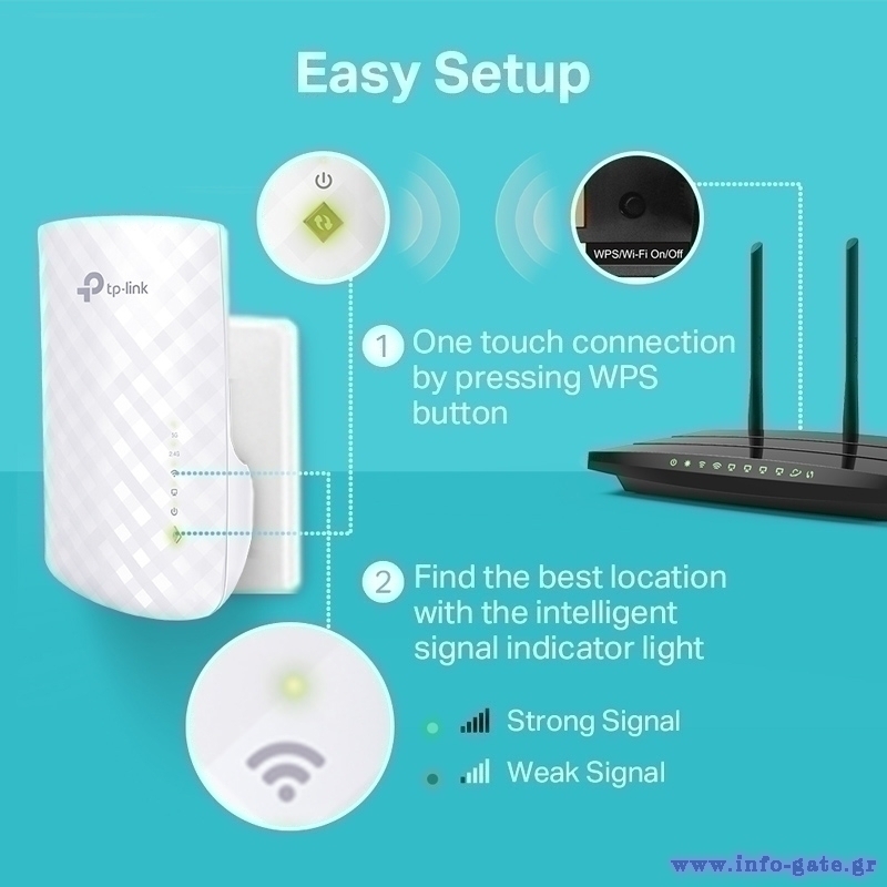 Τοποθετώντας το RE220 μεταξύ του router και των ασύρματων συσκευών σας, μπορείτε να επεκτείνετε την κάλυψη Wi-Fi και να εξαλείψετε τις νεκρές ζώνες στο σπίτι σας.