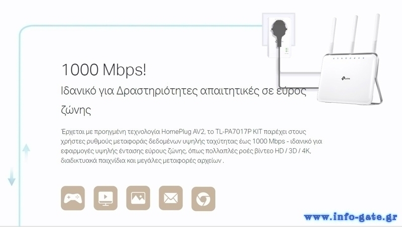 -HomePlug AV2 Standard - ρυθμοί μεταφοράς δεδομένων υψηλής ταχύτητας έως 1000 Mbps, που υποστηρίζουν όλες τις διαδικτυακές σας ανάγκες
