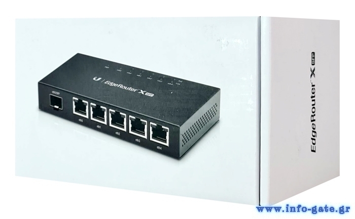Το EdgeRouter X SFP από την Ubiquiti είναι ένα μικρο αλλά ισχυρό router. Εξοπλίζεται με 5x RJ45 Gigabit θύρες που υποστηρίζουν τροφοδοσία PoE και 1x SFP θύρα.