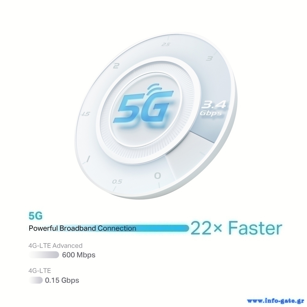 Το router από την TP-LINK σας επιτρέπει να μοιράζεστε μέσω κάρτας SIM, ασύρματο δίκτυο κινητής τηλεφωνίας 5G με ταχύτητες λήψης έως και 3.4 Gbps.