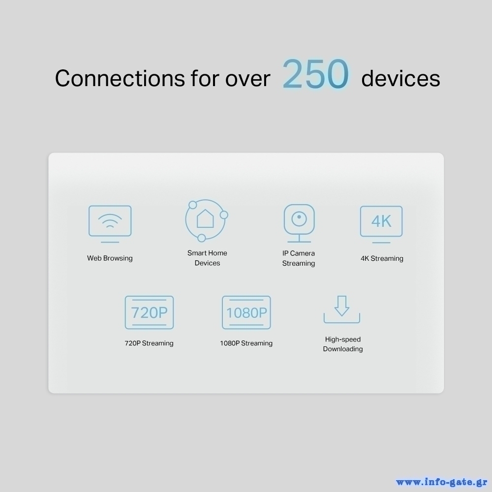 Οι Gigabit θύρες Ethernet παρέχουν γρήγορες ταχύτητες και σταθερές ενσύρματες συνδέσεις για συσκευές όπως smart TV, gaming κονσόλες, NAS κ.α.