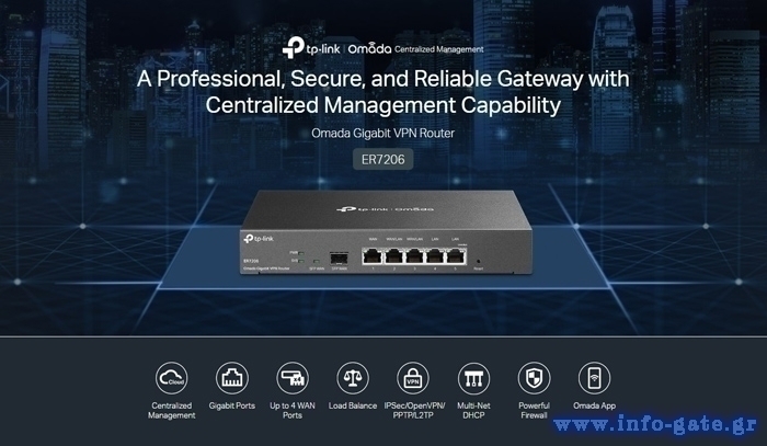 Επιπλέον, είναι εύκολο να διαχειριστείτε το ER7206 μέσω cloud και της εφαρμογής Omada, επιτρέποντας πιο βολική δημιουργία και διαχείριση του δικτύου σας.