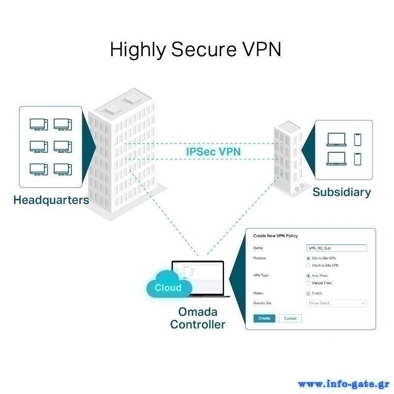 -Εξαιρετικά ασφαλές VPN, υποστηρίζει έως 100x LAN-to-LAN IPsec, 50x OpenVPN, 50x L2TP, & 50x PPTP VPN συνδέσεις