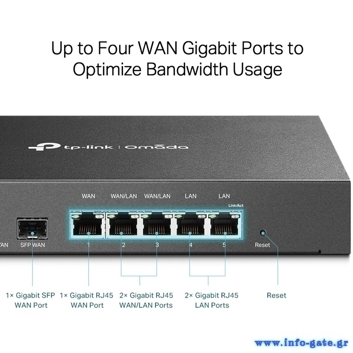 Το Gigabit VPN router ER7206 είναι η ιδανική επιλογή για μικρές και μεσαίες επιχειρήσεις. Διαθέτει συνολικά 5x θύρες Gigabit Ethernet (2x μεταβαλλόμενες θύρες WAN/LAN, 2x θύρες LAN, 1x θύρα WAN) και 1x θύρα Gigabit SFP WAN, οι οποίες μπορούν να ικανοποιήσουν διάφορες απαιτήσεις πρόσβασης στο διαδίκτυο μέσω μιας συσκευής.