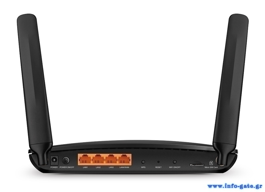 Interface: 1x 10/100/1000 Mbps Θύρα LAN / WAN, 3x 10/100/1000 Mbps Θύρες LAN, 1x Υποδοχή κάρτας Micro SIM