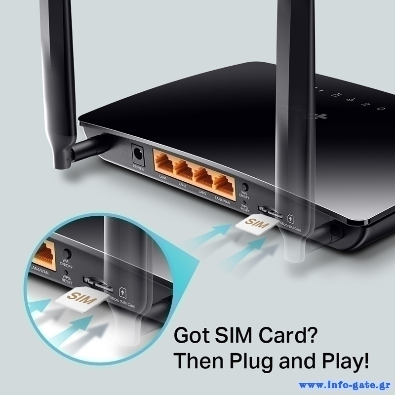 Εκμεταλλευτείτε στο έπακρο το δίκτυο 4G LTE με το Archer MR400, το οποίο σας επιτρέπει να μοιράζεστε δίκτυο με πολλές συσκευές, ώστε να μπορείτε να απολαύσετε ταινίες HD χωρίς διακοπή και γρήγορες λήψεις αρχείων που δεν θα παγώσουν. Με ενσωματωμένο μόντεμ 4G LTE και ενσωματωμένη υποδοχή κάρτας SIM, το μόνο που χρειάζεται να κάνετε είναι να τοποθετήσετε μια κάρτα SIM και να ενεργοποιήσετε το Archer MR400.
