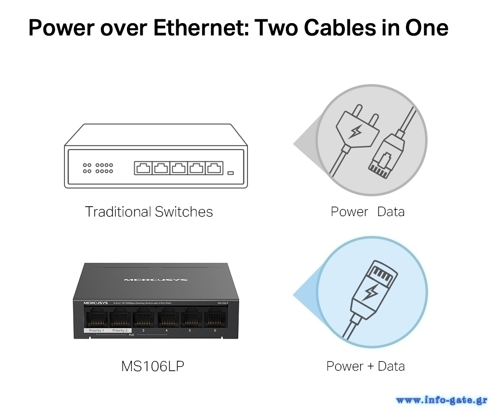-Παρέχει συνδεσιμότητα δεδομένων και τροφοδοσία μέσω ενός μόνο καλωδίου Ethernet