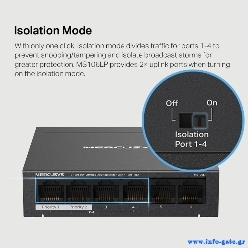 -6x 10/100 Mbps RJ45 θύρες (4x PoE+)