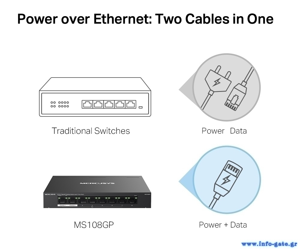 -Παρέχει συνδεσιμότητα δεδομένων και τροφοδοσία μέσω ενός μόνο καλωδίου Ethernet