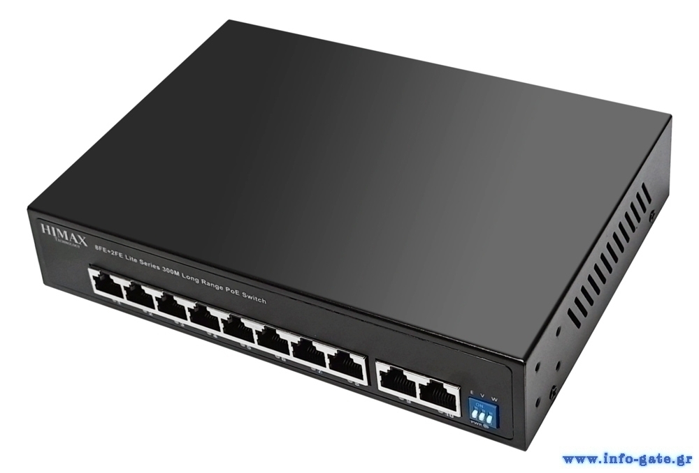 HIMAX PoE switch PS1802E-L, 8x Ethernet PoE & 2x Ethernet θύρες, έως 100Mbps