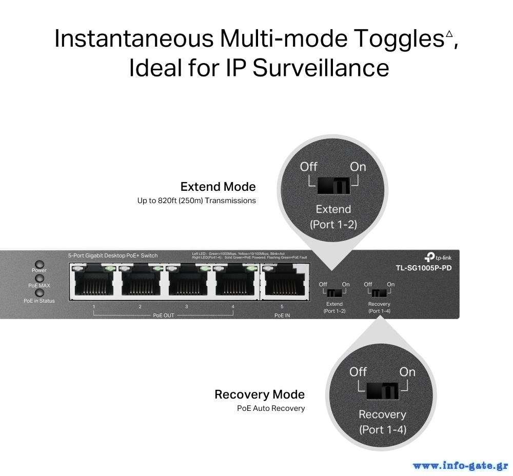 TP-LINK desktop switch TL-SG1005P-PD, 5x Gigabit θύρες, PoE+, UN/1.0