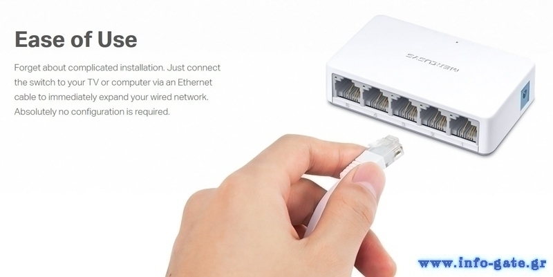-Five 10/100Mbps auto-negotiation RJ45 ports with auto MDI/MDIX supported