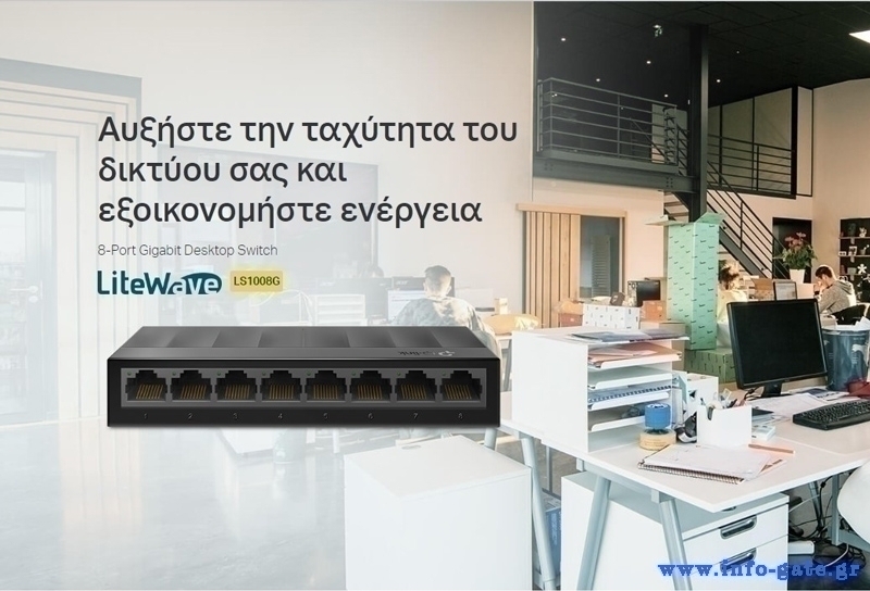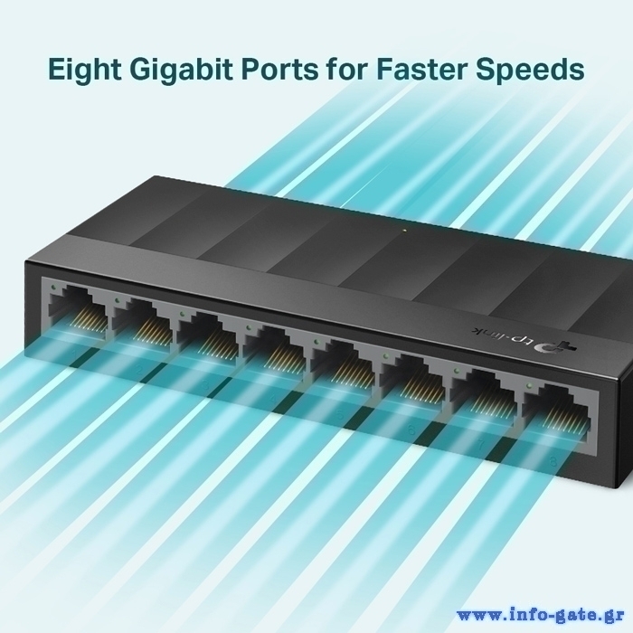 Αυξήστε την ταχύτητα του δικτύου σας με το 8-port desktop switch LS1008G. Οι 8x Gigabit θύρες με ταχύτητες 10/100/1000Mbps επιτρέπουν την άμεση μεταφορά μεγάλων, εντάσεων εύρους ζώνης αρχείων χωρίς παρεμβολές.