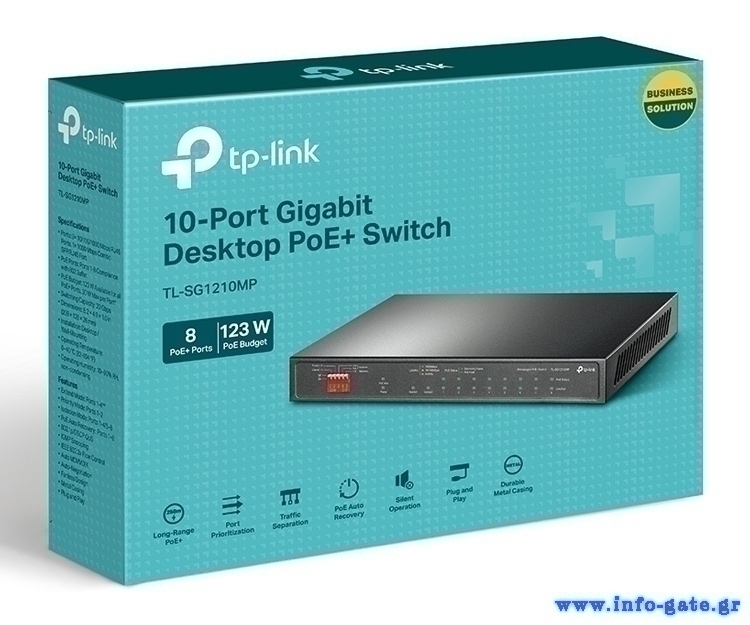 Το 10-Port Desktop Switch TL-SG1210MP έχει σχεδιαστεί για να καλύπτει τις ανάγκες των πιο υψηλών απαιτήσεων συνδεσιμότητας. Ένα αξιόπιστο, εύχρηστο Switch χωρίς την πολυπλοκότητα της διαχείρισης, το TL-SG1210MP παρέχει 48 θύρες 10/100/ 1000Mbps. Συνδυάζει την ευκολία χρήσης με την αξεπέραστη απόδοση.
