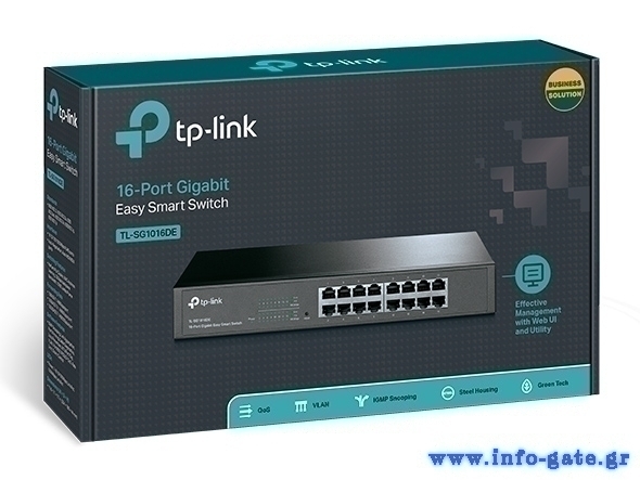 To TL-SG1016DE 16-Port Gigabit Easy Smart switch είναι μια ιδανική αναβάθμιση από ένα μη διαχειριζόμενο switch, σχεδιασμένο για δίκτυα μικρών και μεσαίων επιχειρήσεων που απαιτούν απλή διαχείριση δικτύου. Οι διαχειριστές δικτύου μπορούν να παρακολουθούν αποτελεσματικά την κυκλοφορία μέσω των λειτουργιών Port Mirroring, Loop Prevention και Cable Diagnostics. Για τη βελτιστοποίηση της επισκεψιμότητας στο επιχειρηματικό σας δίκτυο, το TL-SG1016DE προσφέρει προτεραιότητα θύρας / προτεραιότητα 802.1P και DSCP QoS 1 για να διατηρεί την κίνηση που είναι ευαίσθητη σε latency χωρίς προβλήματα. Επιπλέον, το port-based, tag-based και το MTU VLAN μπορούν να βελτιώσουν την ασφάλεια και να ικανοποιήσουν περισσότερες απαιτήσεις τμηματοποίησης δικτύου. Επιπλέον, με την καινοτόμο ενεργειακά αποδοτική τεχνολογία, το TL-SG1016DE μπορεί να εξοικονομήσει κατανάλωση ενέργειας, καθιστώντας το μια φιλική προς το περιβάλλον λύση για το επιχειρηματικό σας δίκτυο.