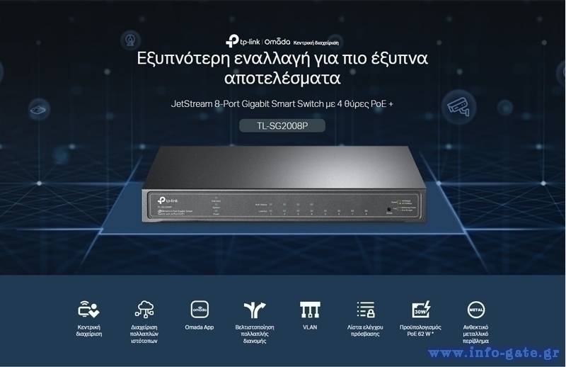 -Ενσωματωμένο στην πλατφόρμα Omada SDN για κεντρική διαχείριση cloud