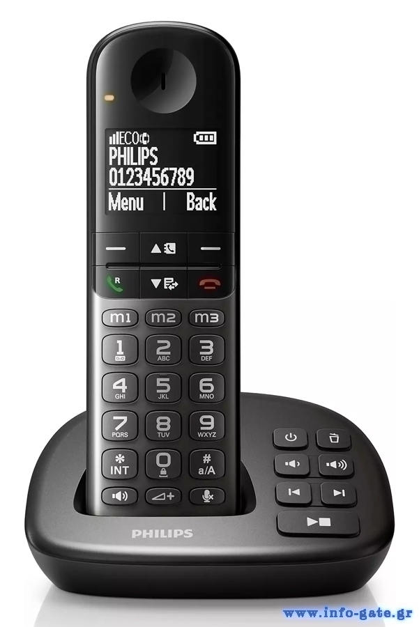 PHILIPS ασύρματο τηλέφωνο XL4951DS/34, ελληνικό μενού, τηλεφωνητής, μαύρο
