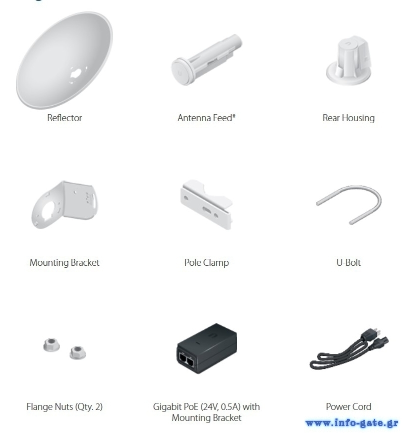 Power supply: 24V, 0.5A Gigabit PoE adapter (Included)
