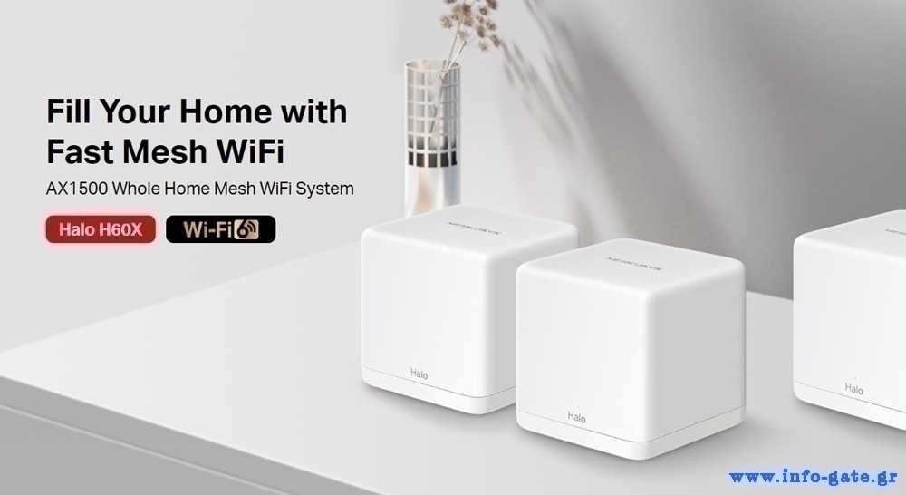 MERCUSYS Mesh WiFi 6 System Halo H60X, 1500Mbps Dual Band, 3τμχ, V.1.0