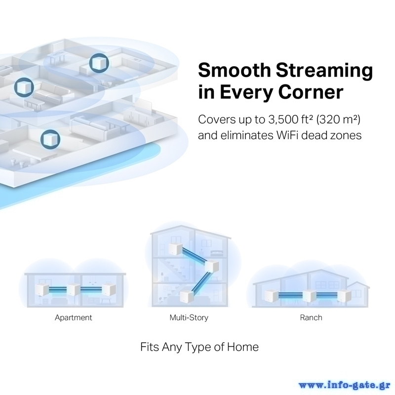 -Κάλυψη σε ολόκληρο το σπίτι: Κάλυψη έως 2.800 ft² (260 m²) με WiFi υψηλής ταχύτητας, εξαλείφοντας τις νεκρές ζώνες WiFi στο σπίτι σας.