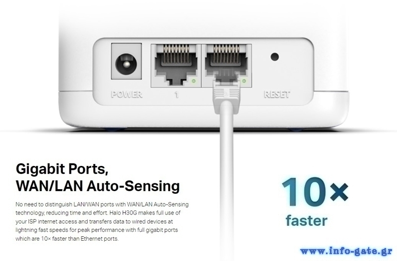 -Πλήρεις θύρες Gigabit: 2x θύρες Gigabit ανά μονάδα Halo για αστραπιαίες ενσύρματες συνδέσεις δικτύου