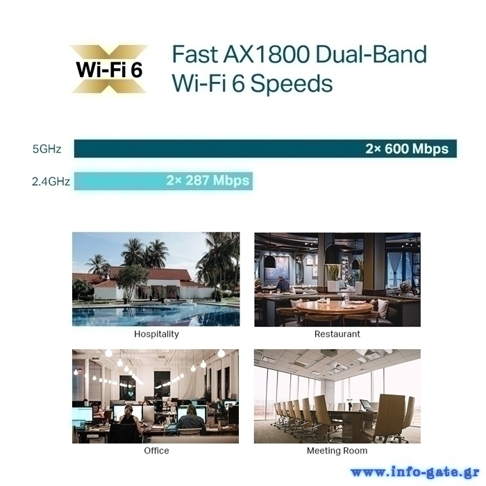 -Γρήγορες ταχύτητες Wi-Fi 6, 574Mbps στα 2.4GHz & 1201Mbps στα 5GHz ταυτόχρονα