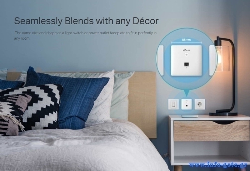 Έχει χαμηλό προφίλ, ώστε να ταιριάζει με το υπόλοιπο στυλ του εσωτερικού του χώρου, και είναι συμβατό με το Cloud Controller Software ώστε να το ρυθμίζετε απομακρυσμένα. Υποστηρίζει MU-MIMO και dual-band στα 2.4 GHz και 5 GHz με ταχύτητες έως 1200Mbps.