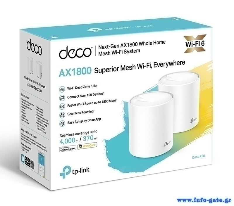 TP-LINK Mesh WiFi 6 access point Deco X20, AX1800 Dual Band, 2τμχ, V.2.0