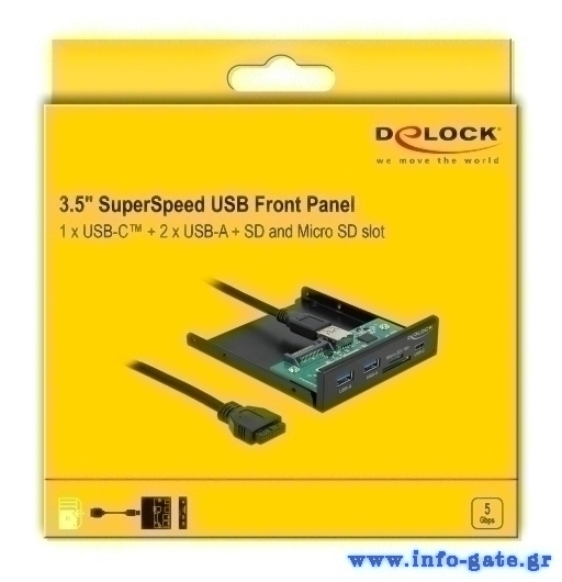 DELOCK front panel 64058, 3.5" σε USB-C, 2x USB & SD/Micro SD