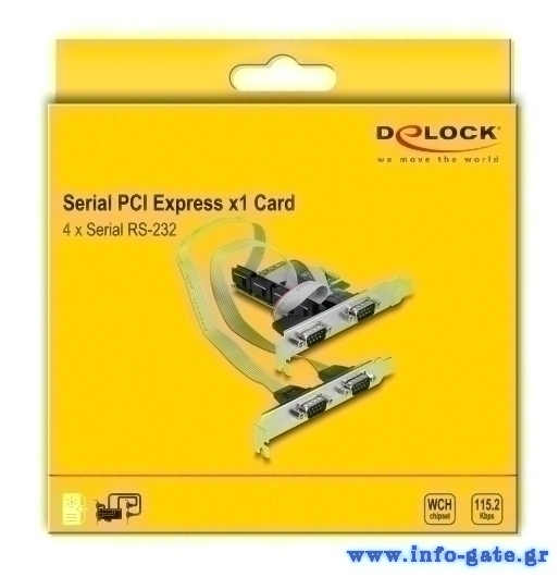 DELOCK κάρτα επέκτασης PCIe σε 4x RS-232 90410, 115.2Kbps