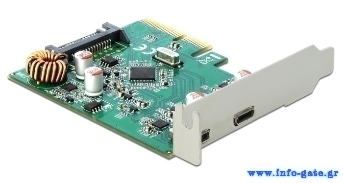 Αυτή κάρτα PCI Express της Delock διευρύνει τις θύρες του PC σας με 2x USB-C εξωτερικές θύρες. Διαφορετικές συσκευές USB, όπως docking stations, card readers κ.λπ. μπορούν να συνδεθούν στην κάρτα.
