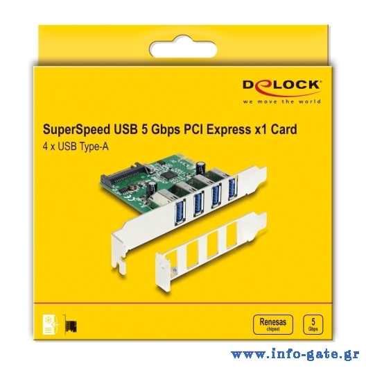 DELOCK κάρτα επέκτασης PCI Express x1 σε 4x USB 89360, 5 Gbps