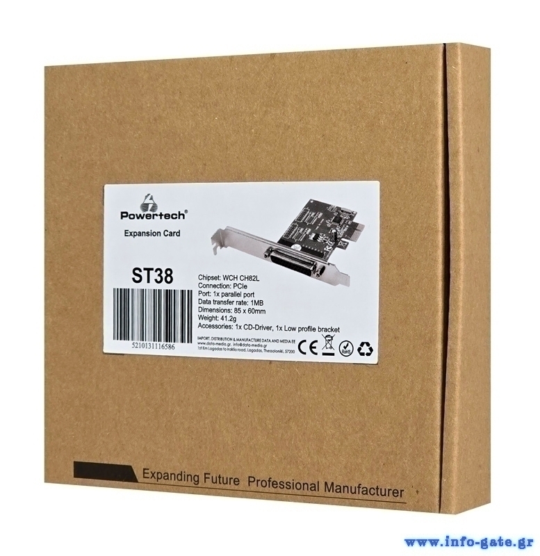 POWERTECH κάρτα επέκτασης PCIe σε 1x parallel ST38, 1MB, 85x60mm