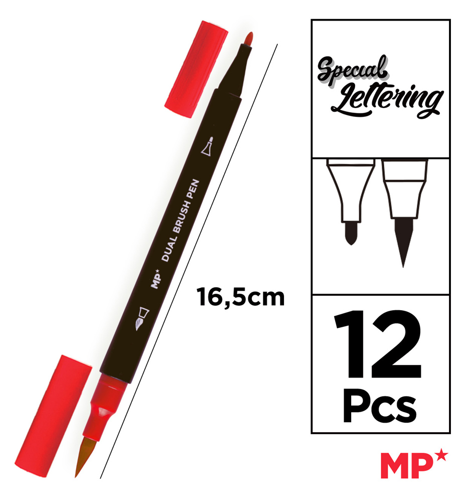 MP σετ χρωματιστών μαρκαδόρων PP913 με διπλή μύτη, 12τμχ