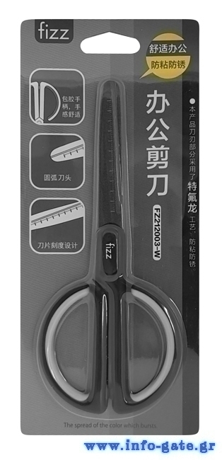 FIZZ ψαλίδι FZ212003-W με χάρακα, μεταλλική λεπίδα, 17cm, μαύρο-λευκό